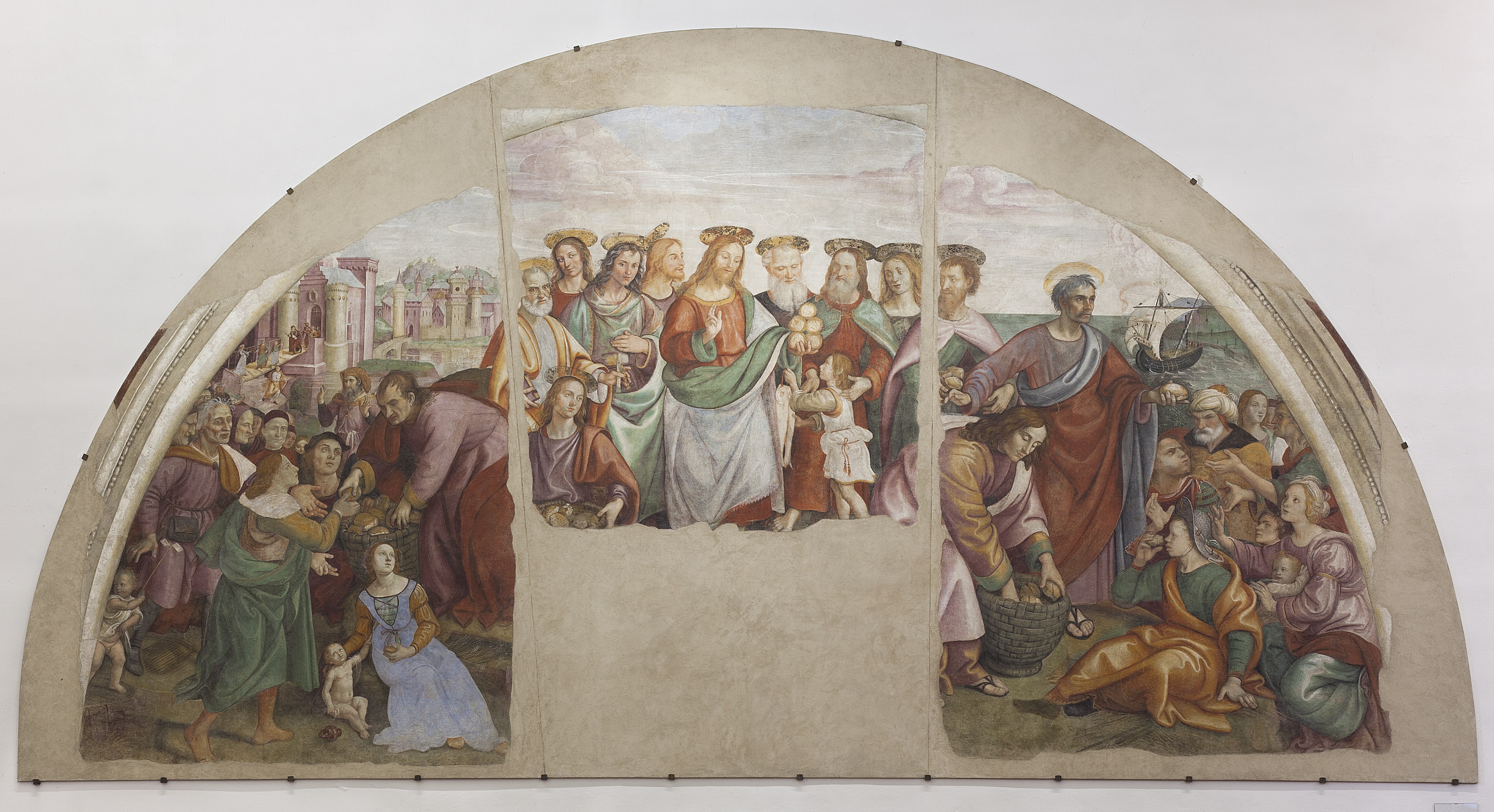 Sulla parete sinistra si trova invece un grande affresco staccato a lunetta di Raffaellino del Garbo con la Moltiplicazione dei pani e dei pesci, proveniente dal distrutto refettorio del Monastero di Santa Maria Maddalena dei Pazzi: dell’opera sono esposte anche due sinopie vicino all’ingresso.